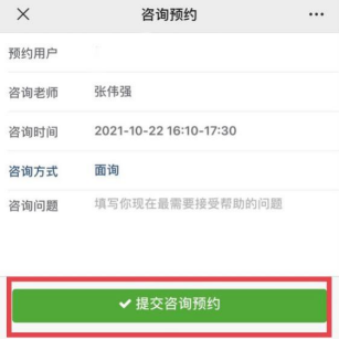 步骤四:选择预约用户、填写咨询问题-提交咨询预约,可成功预约。