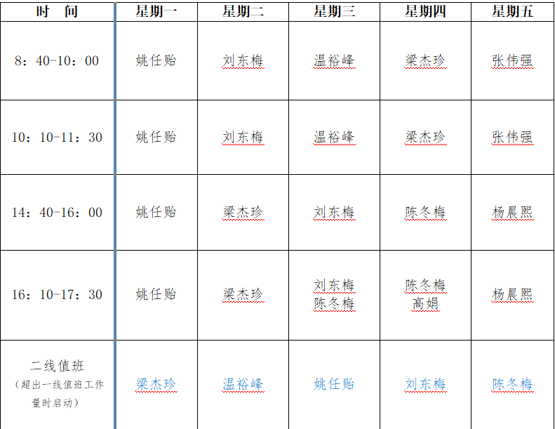 惠州卫职院心理咨询室值班安排表
